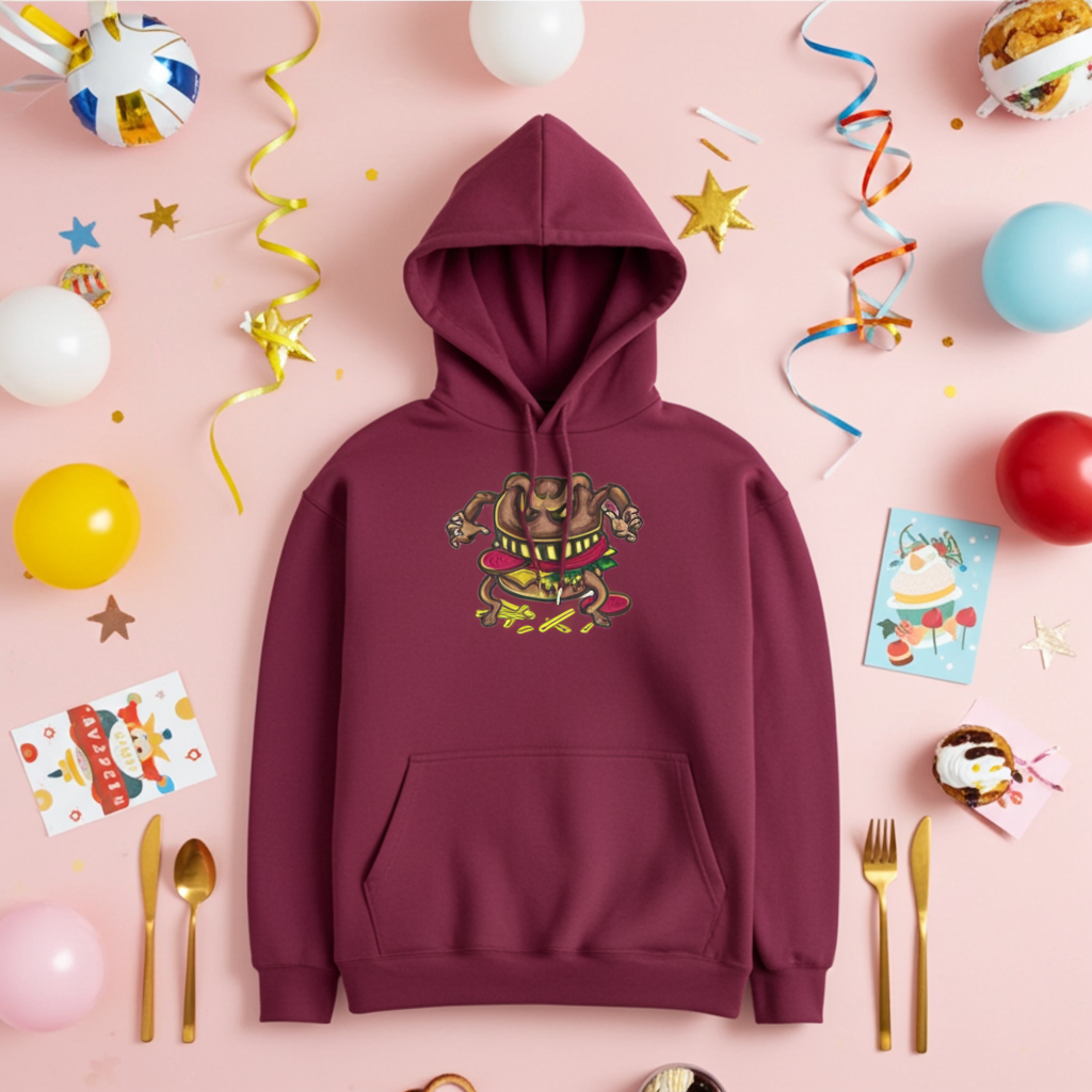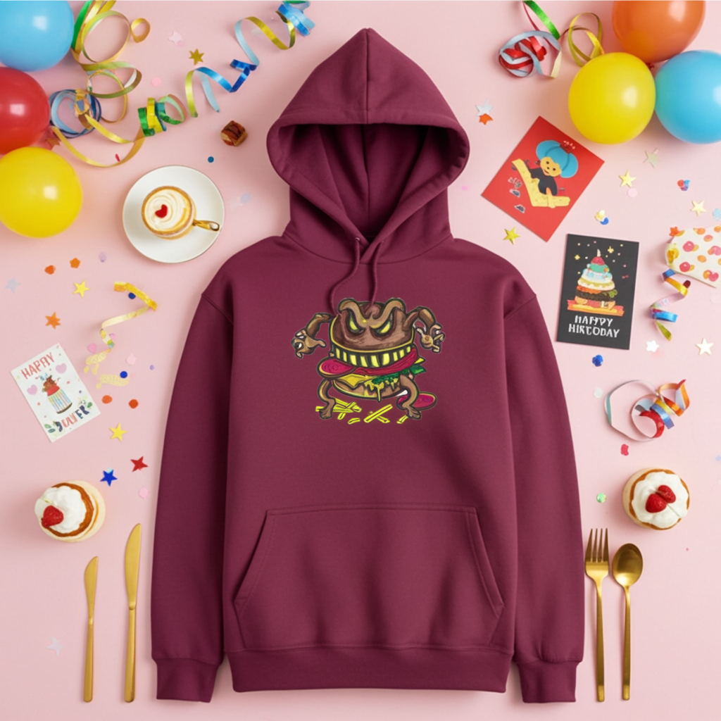 كنزة مطرزة بشعار "هيكس أوف ذا هانغري: كيرسد برجر" - إصدار "بوسيسد باتي" 🍔💀 | صناعة حرفية فردية